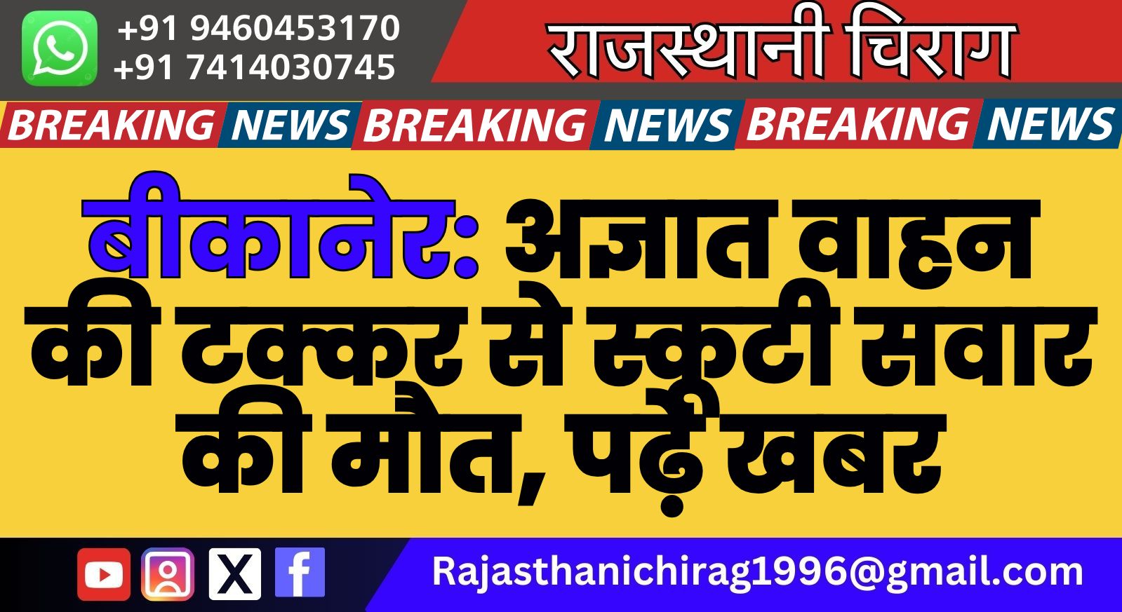 बीकानेर: अज्ञात वाहन की टक्कर से स्कूटी सवार की मौत, पढ़े खबर