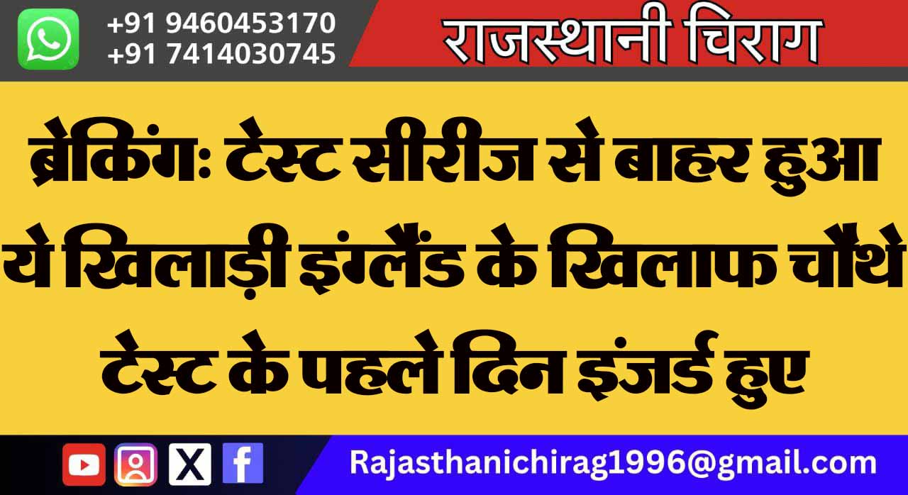 ब्रेकिंग: टेस्ट सीरीज से बाहर हुआ ये खिलाड़ी इंग्लैंड के खिलाफ चौथे टेस्ट के पहले दिन इंजर्ड हुए