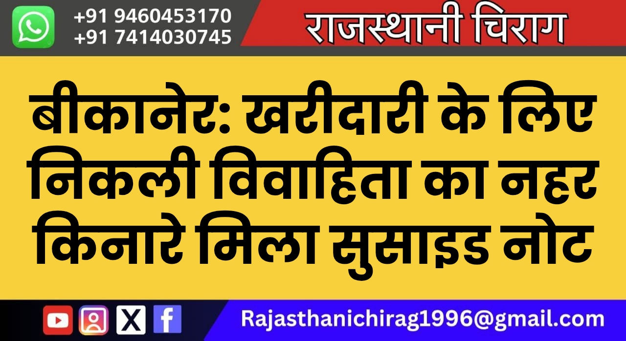 बीकानेर: खरीदारी के लिए निकली विवाहिता का नहर किनारे मिला सुसाइड नोट
