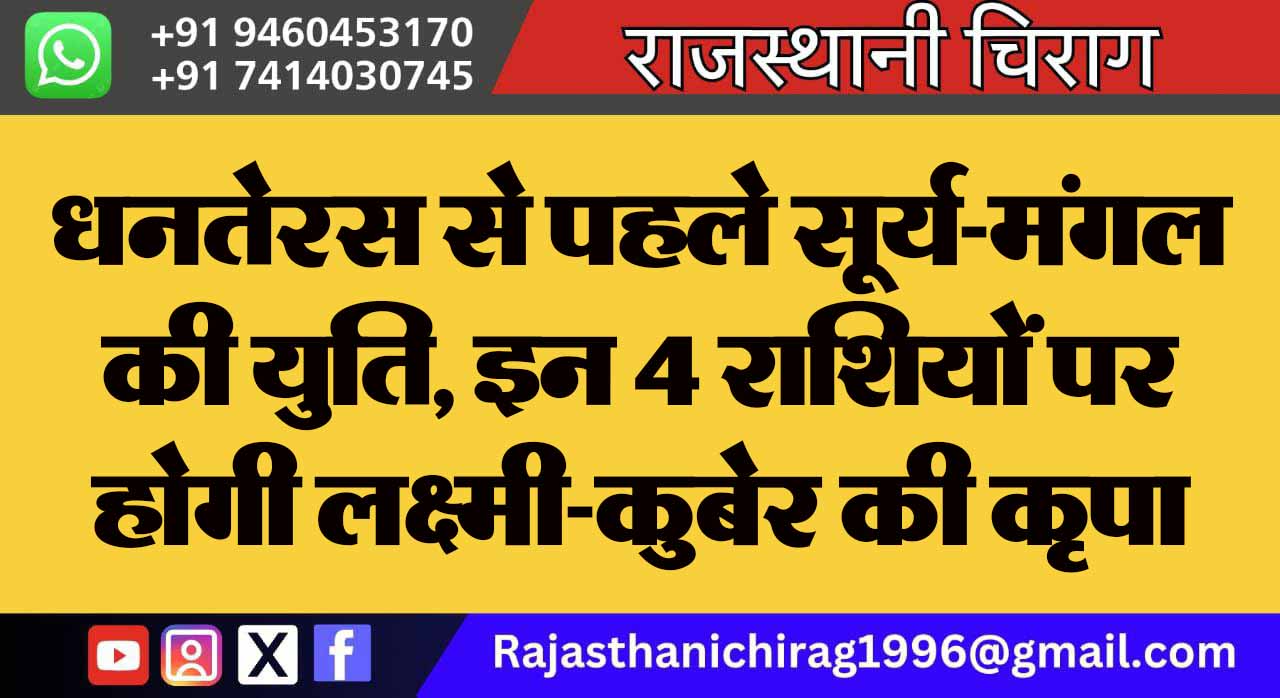 धनतेरस से पहले सूर्य-मंगल की युति, इन 4 राशियों पर होगी लक्ष्मी-कुबेर की कृपा
