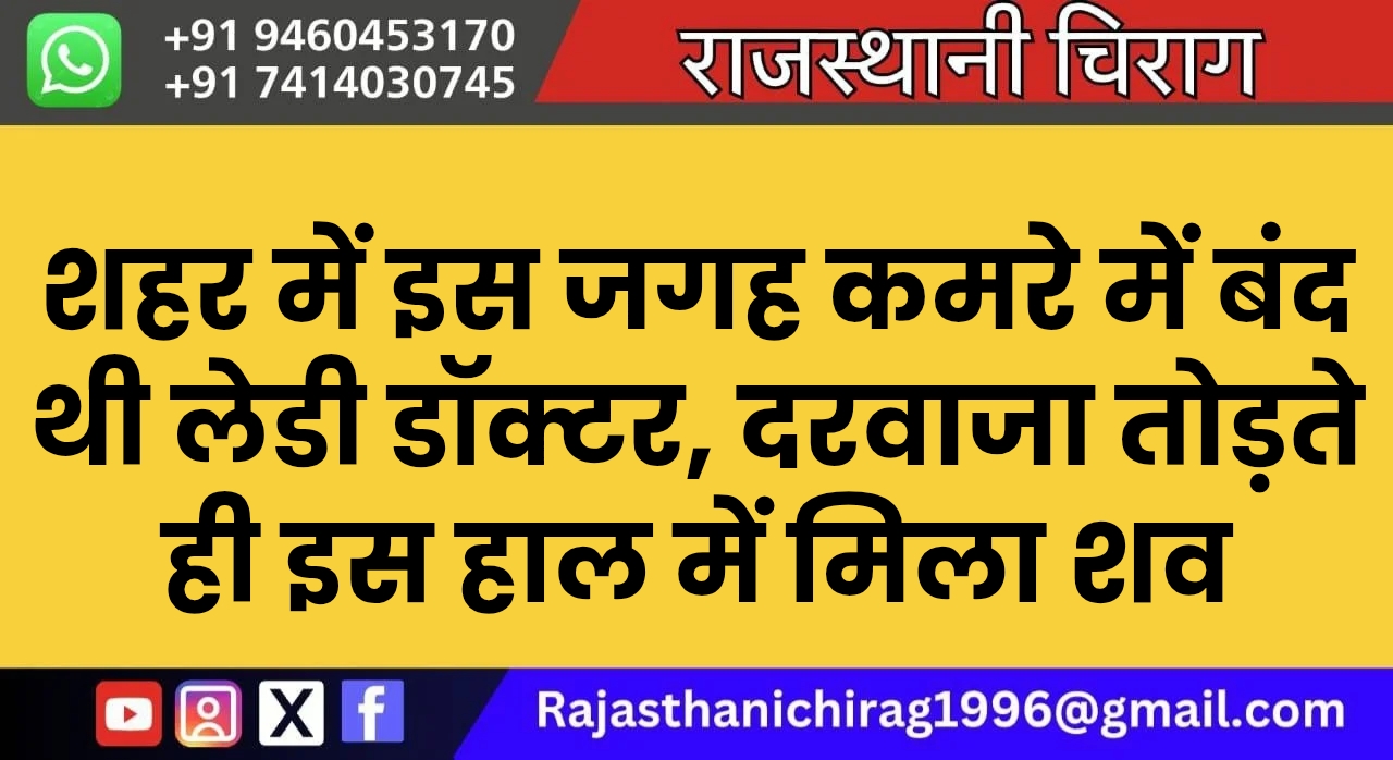 शहर में इस जगह कमरे में बंद थी लेडी डॉक्टर, दरवाजा तोड़ते ही इस हाल में मिला शव
