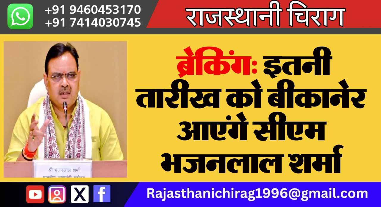 ब्रेकिंग: इतनी तारीख को बीकानेर आएंगे सीएम भजनलाल शर्मा