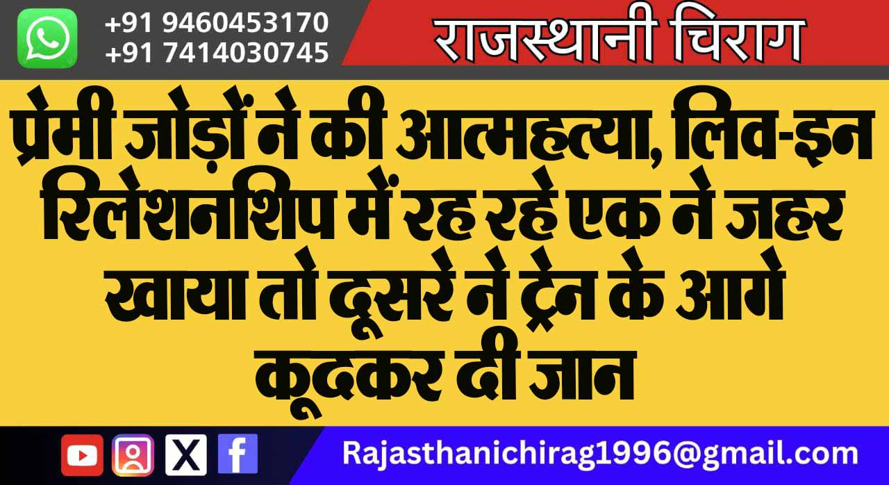 प्रेमी जोड़ों ने की आत्महत्या, लिव-इन रिलेशनशिप में रह रहे एक ने जहर खाया तो दूसरे ने ट्रेन के आगे कूदकर दी जान