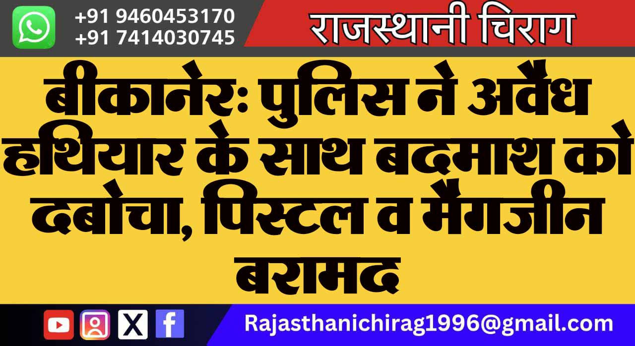 बीकानेर: पुलिस ने अवैध हथियार के साथ बदमाश को दबोचा, पिस्टल व मैगजीन बरामद