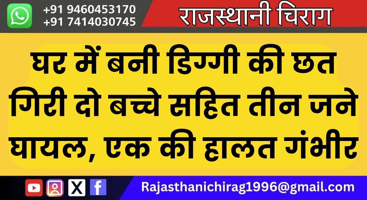 घर में बनी डिग्गी की छत गिरी दो बच्चे सहित तीन जने घायल, एक की हालत गंभीर