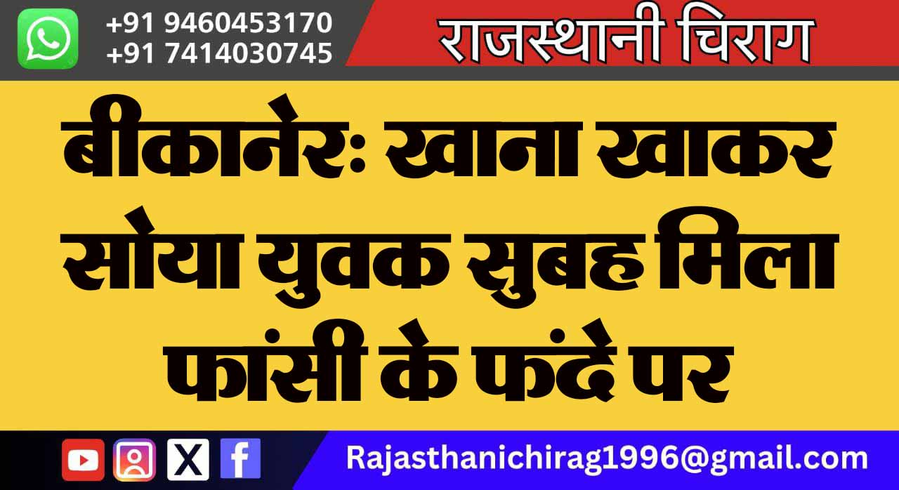 बीकानेर: खाना खाकर सोया युवक सुबह मिला फांसी के फंदे पर