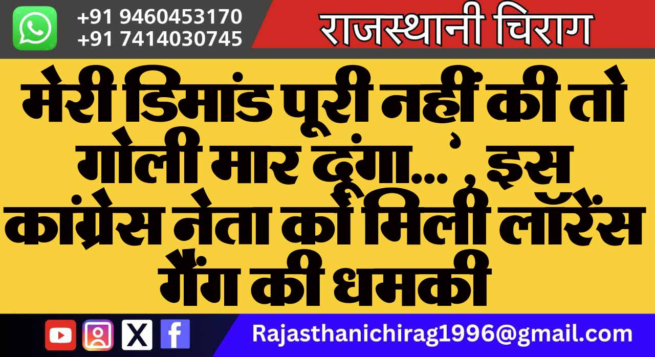 मेरी डिमांड पूरी नहीं की तो गोली मार दूंगा…’, इस कांग्रेस नेता को मिली लॉरेंस गैंग की धमकी