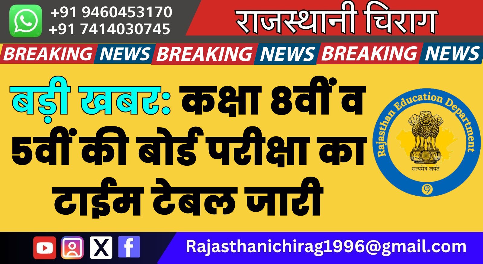 बड़ी खबर: कक्षा 8वीं व 5वीं की बोर्ड परीक्षा का टाईम टेबल जारी