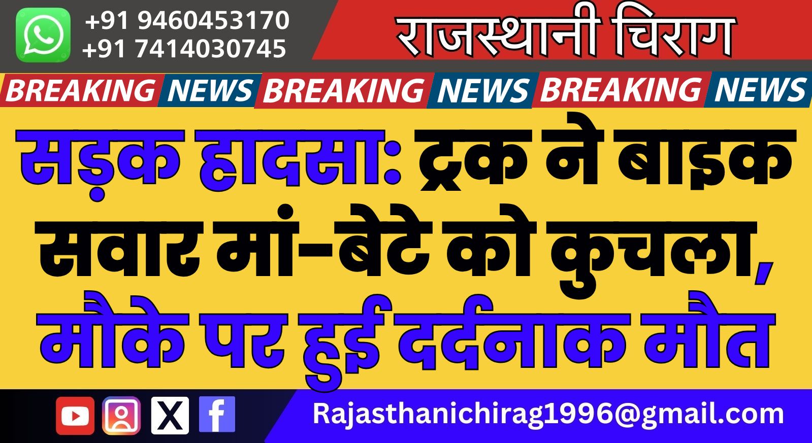 जानकारी के मुताबिक, नागौर जिले के देह गांव निवासी शांति (पत्नी धूड़ाराम) और उसका बेटा मांगीलाल (पुत्र धूड़ाराम) बाइक पर सवार थे। वे नोखा में अपनी बहन और बेटी के ससुराल मिलने गए थे। वापस लौटते समय चरकड़ा गांव के पास सामने से आ रहे एक ट्रक ने बाइक को टक्कर मार दी।