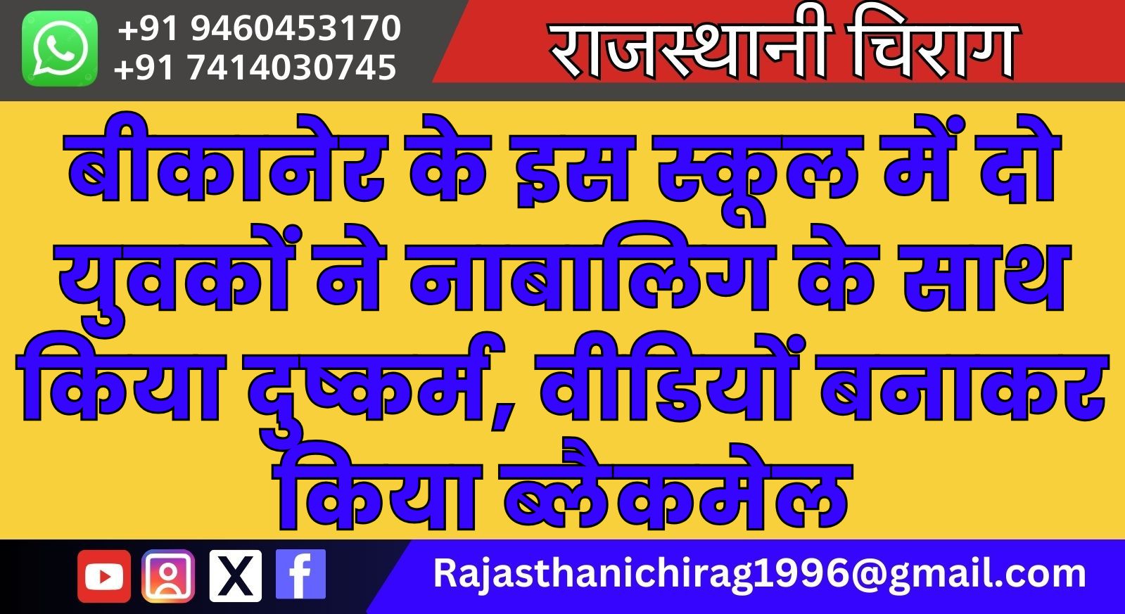 बीकानेर के इस स्कूल में दो युवकों ने नाबालिग के साथ किया दुष्कर्म, वीडियों बनाकर किया ब्लैकमेल