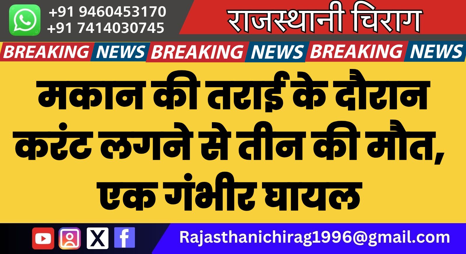 मकान की तराई के दौरान करंट लगने से तीन की मौत, एक गंभीर घायल