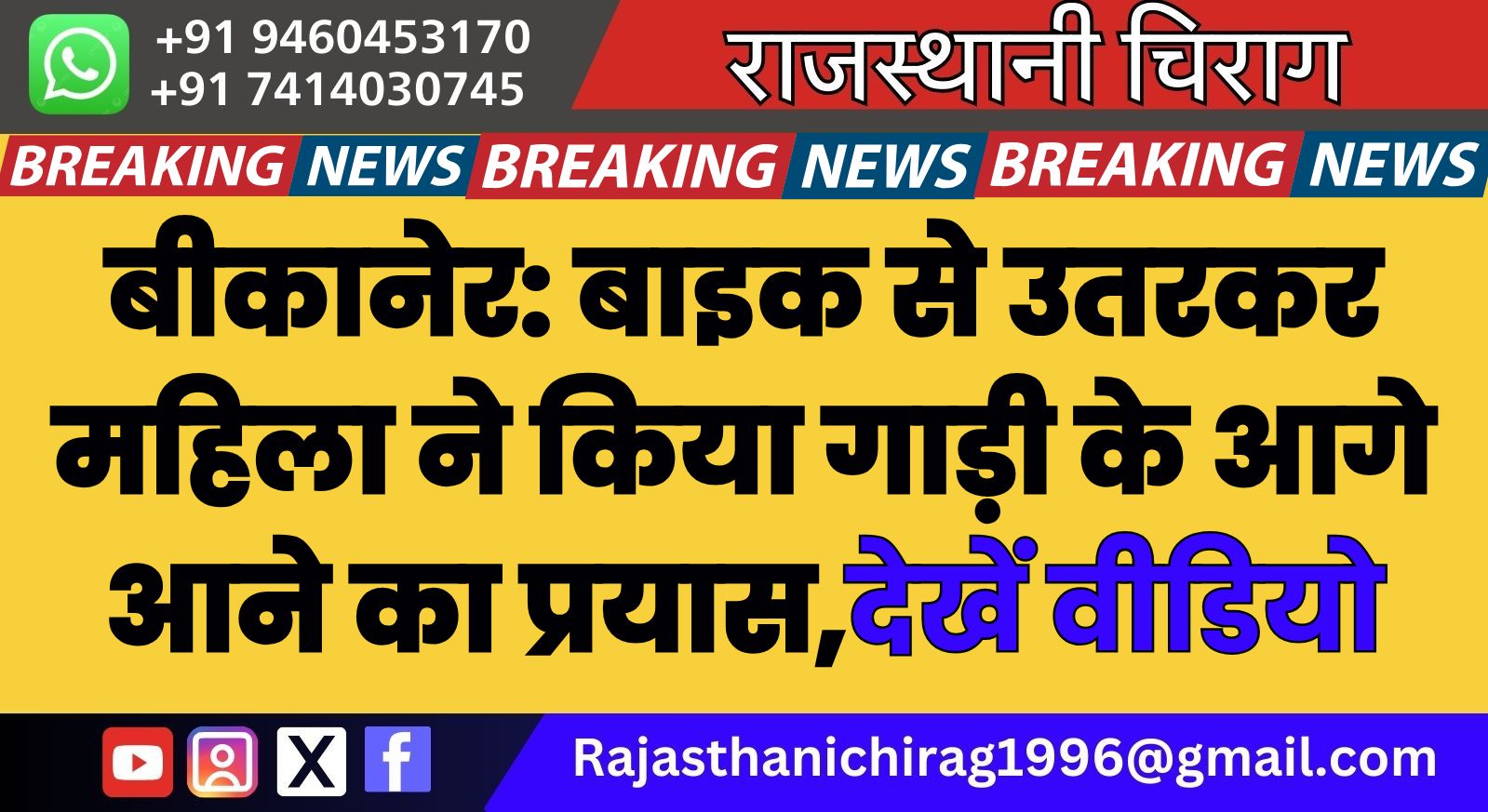 बीकानेर: बाइक से उतरकर महिला ने किया गाड़ी के आगे आने का प्रयास,देखें वीडियो